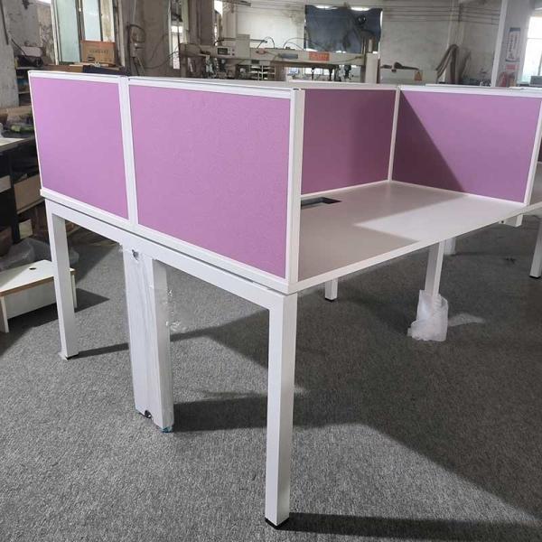 3.Accompanying the striking purple surface is a sleek white metal leg structure, which provides stability and durability. The combination of these colors creates a visually appealing contrast that brightens up any office environment. The design not only caters to individual needs but also fosters a sense of unity among team members.